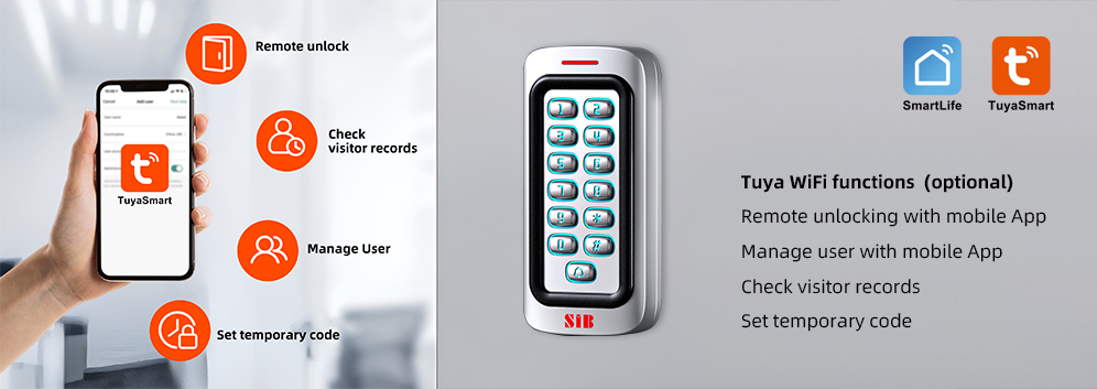Access way: card,code,card+code,tuya App(optional)